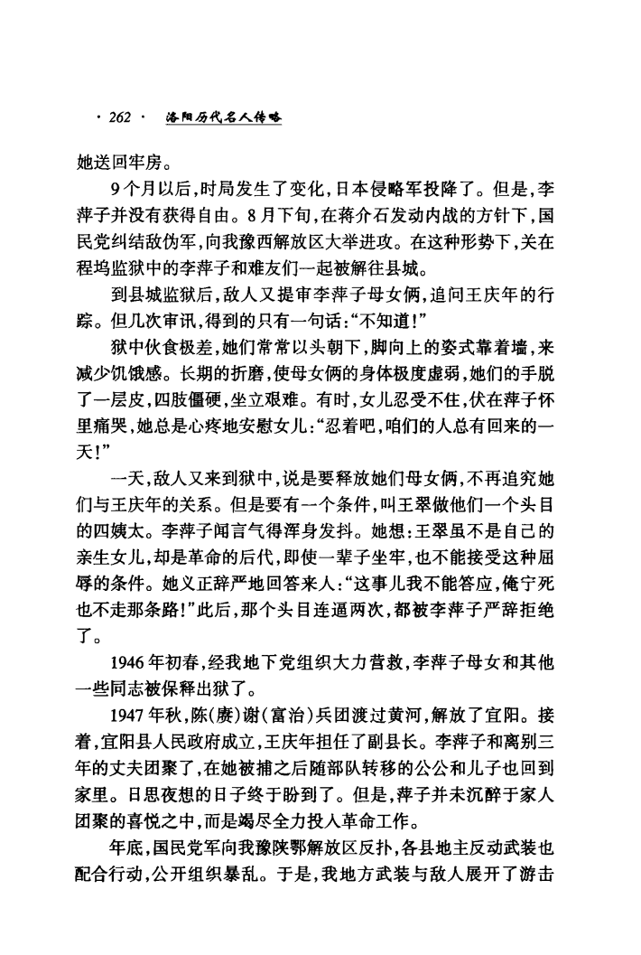 当时,新生政权极不稳固。1948年初,国民党胡宗南调动大军反扑豫西,解放军主力向南挺进,宜阳空虚。王庆年率领武装力量转移到赵保黑山一带打游击。李萍藏在老乡家里,不幸再次被国民党抓捕。